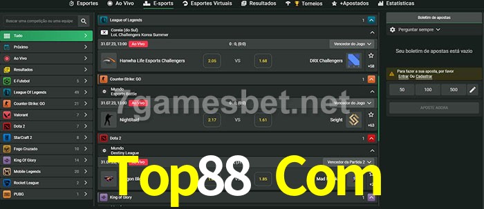 A aposta Top88 Com oferece aos jogadores a experiência mais conveniente de apostas em eSports!